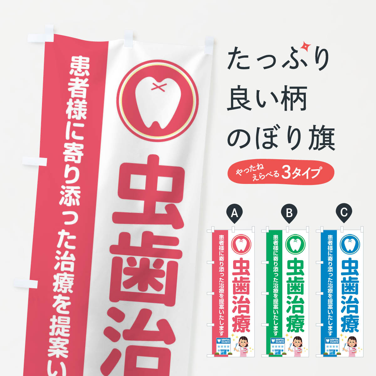 【ネコポス送料360】 のぼり旗 虫歯治療・イラストのぼり 368N 歯科医院 グッズプロ 【名入れできます+1017円】